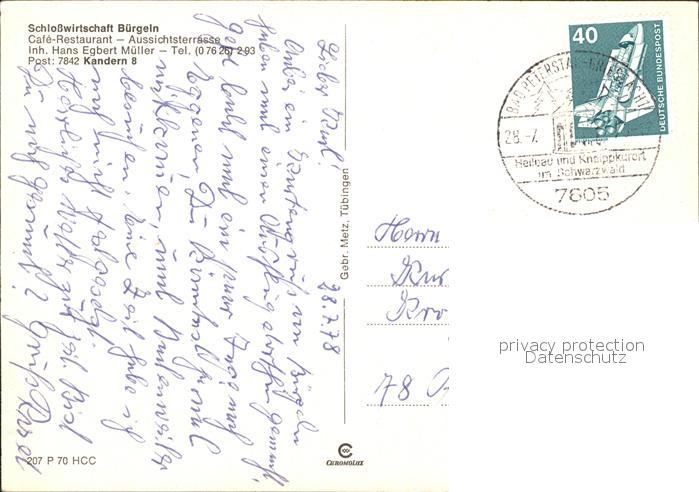71830932 alte Postkarte Kandern Schlosswirtschaft Buergeln Gedicht Johann Peter Hebel postalisch gelaufen Erhaltung siehe scans KatCode: 11110008336045