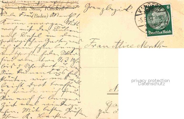 32730255 alte Postkarte Kandern Villa Stein Zeichnung postalisch gelaufen Erhaltung siehe scans [WerneD78] KatCode: 11110008336045