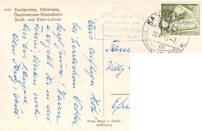 13919951 alte Postkarte Kandersteg BE Hoehenweg oeschinensee Sesselbahn Gross und Klein Lohner postalisch gelaufen Erhaltung siehe scans [FriedD77] KatCode: 11470060170214