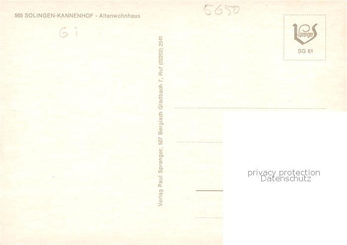 73863379 Kannenhof Solingen Altenwohnhaus postalisch nicht gelaufen Erhaltung siehe scans [FriedD77] Frie Katcode 11110005122000