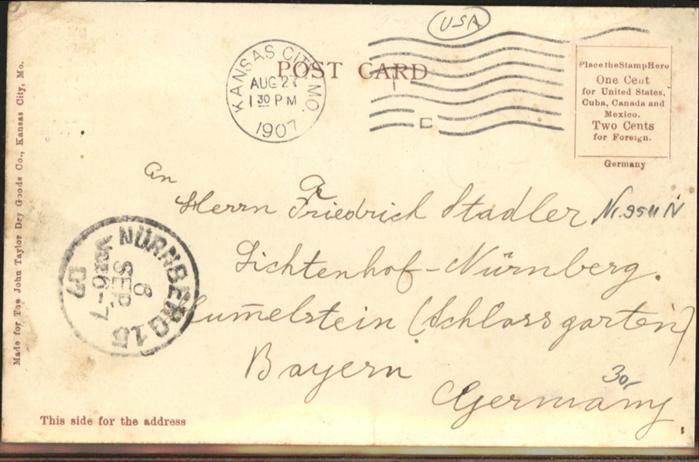 11032152 old postcard Kansas City Missouri [Stempelabschlag]John Taylor postalisch gelaufen KatCode: 14140270000000