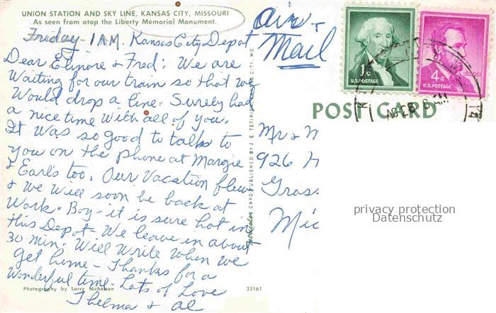 74064041 old postcard Kansas City Missouri Union Station and Skyline postalisch gelaufen Erhaltung siehe scans [WerneD78] KatCode: 14140270000000