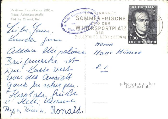 72592574 alte Postkarte Kanzelkehre Tirol Rasthaus Kanzelkehre Neue Aschenseestrasse Zillertal Alpen postalisch gelaufen Erhaltung siehe scans [FriedD77] KatCode: 11390335070939