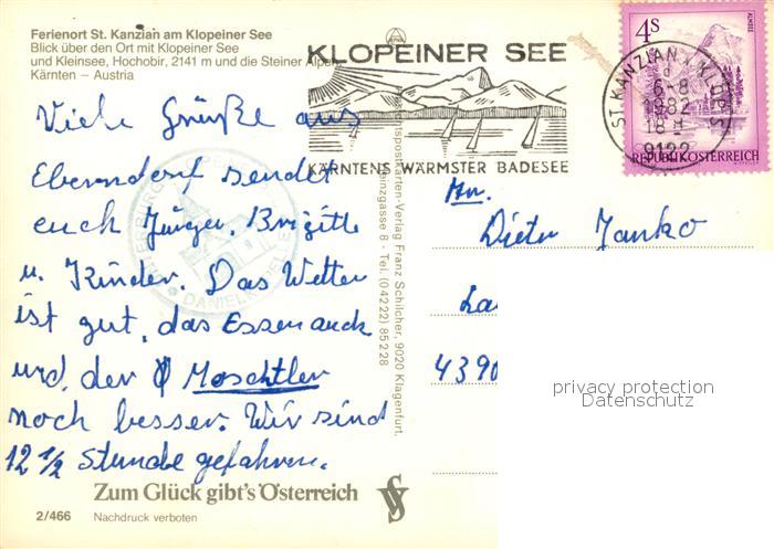 73049404 alte Postkarte Kanzian Klopeiner See St Fliegeraufnahme postalisch gelaufen Erhaltung siehe scans [KathaD81] KatCode: 11390213020813