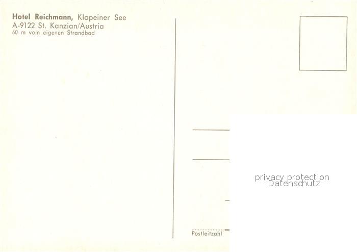 73160461 Kanzian Klopeiner See St Hotel Reichmann Klopeiner See postalisch nicht gelaufen Erhaltung siehe scans [LiesaD40] KatCode: 11390213020813