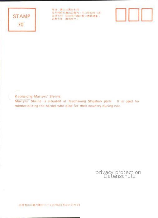 Kaohsiung Martyrs Shrine postalisch nicht gelaufen Erhaltung siehe scans