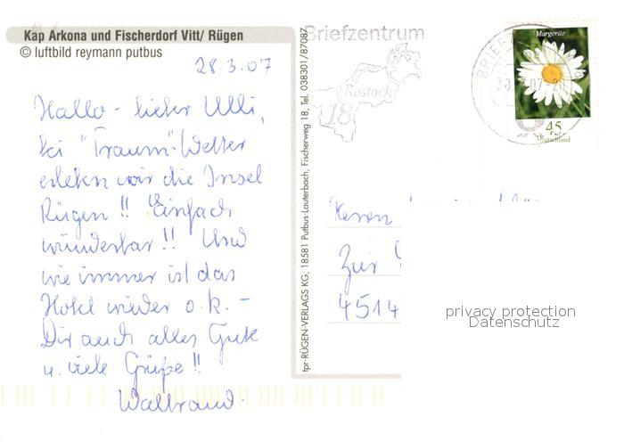 73322204 alte Postkarte Kap Arkona Fischerdorf Vitt Fliegeraufnahme postalisch gelaufen Erhaltung siehe scans [KathaD81] KatCode: 11110013061029