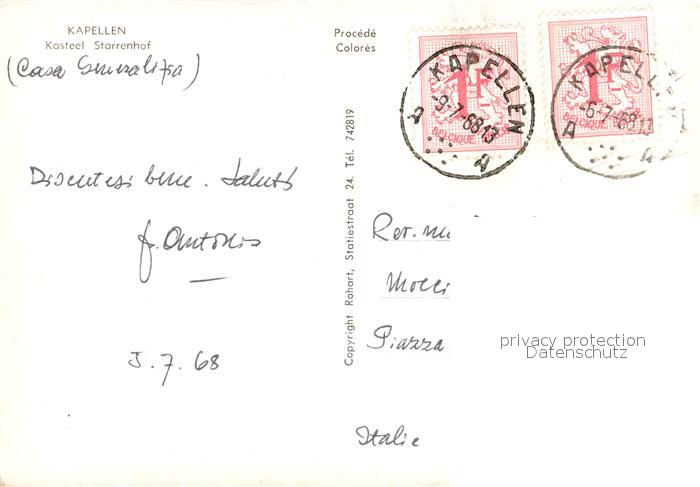 73195562 carte postale Kapellen Antwerpen Kasteel Starrenhof postalisch gelaufen Erhaltung siehe scans [WerneD78] KatCode: 11070011003062