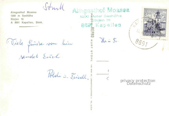 74155989 alte Postkarte Kapellen Steiermark AT Almgasthof Moassa postalisch gelaufen Erhaltung siehe scans [WerneD78] KatCode: 11390223061304