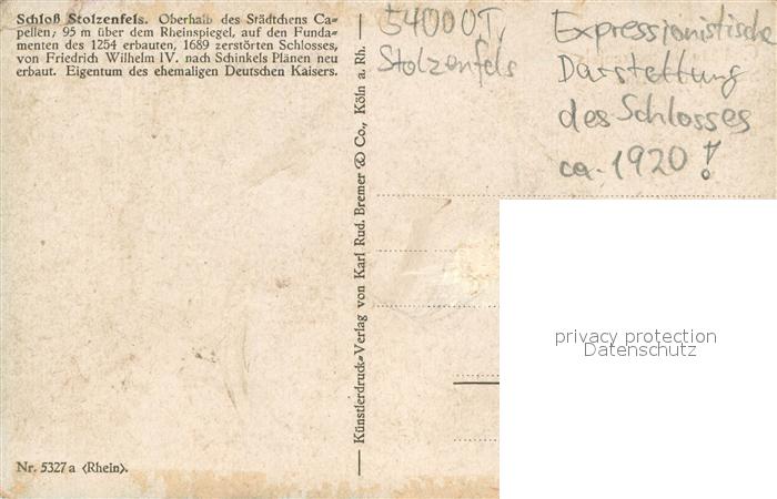 73695362 Kapellen-Stolzenfels Schloss Stolzenfels postalisch nicht gelaufen Erhaltung siehe scans [WerneD78] KatCode: 11110007111000
