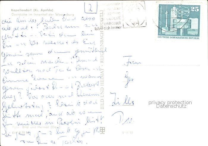 72163982 alte Postkarte Kapellendorf Gaststaette im Innenhof der Wasserburg postalisch gelaufen Erhaltung siehe scans KatCode: 11110016071037