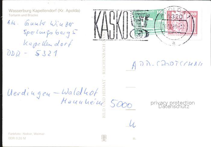 72414952 alte Postkarte Kapellendorf Wasserburg Torturm Bruecke postalisch gelaufen Erhaltung siehe scans KatCode: 11110016071037