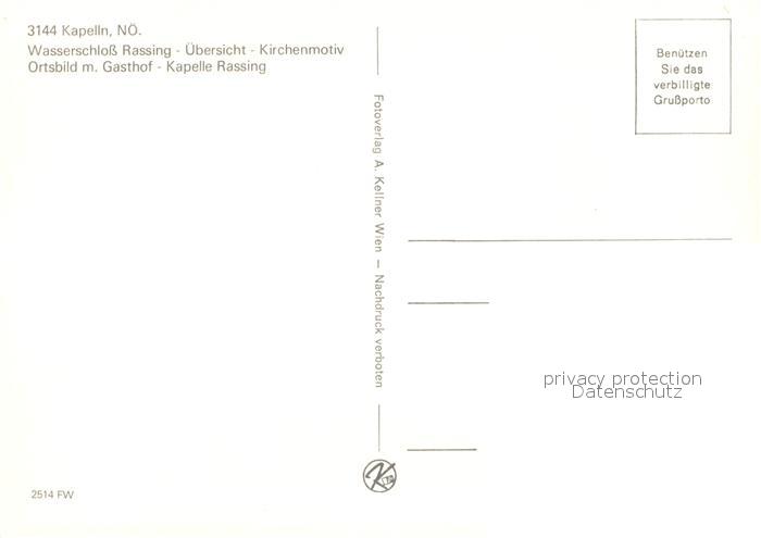 73531728 Kapelln Wasserschloss Rassing Motiv mit Kirche Gasthof Kapelle postalisch nicht gelaufen Erhaltung siehe scans [FriedD77] KatCode: 11390123031915