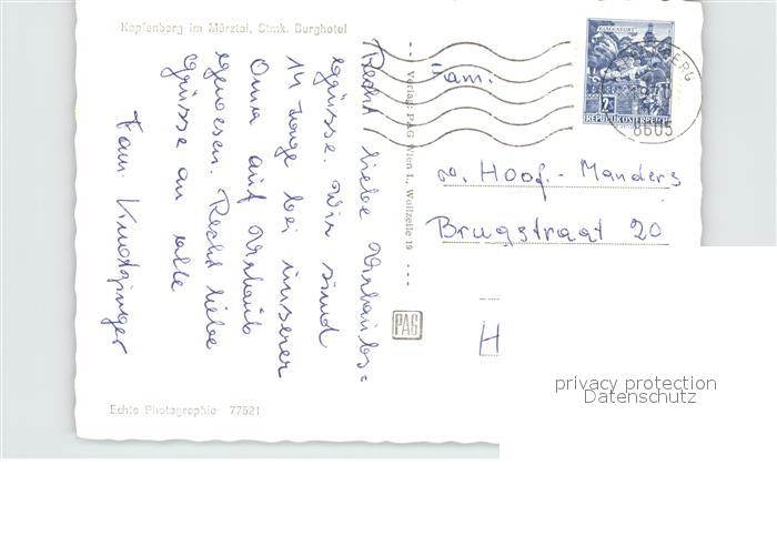12573891 alte Postkarte Kapfenberg Fliegeraufnahme postalisch gelaufen Erhaltung siehe scans [WerneD78] KatCode: 11390223060209