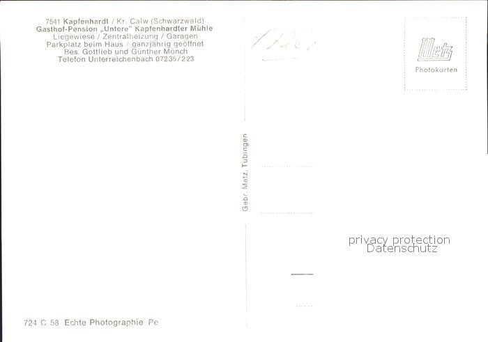 41768630 Kapfenhardt Gasthaus Pension Untere Kapfenhardter Muehle Schwarzwald postalisch nicht gelaufen Erhaltung siehe scans KatCode: 11110008235073