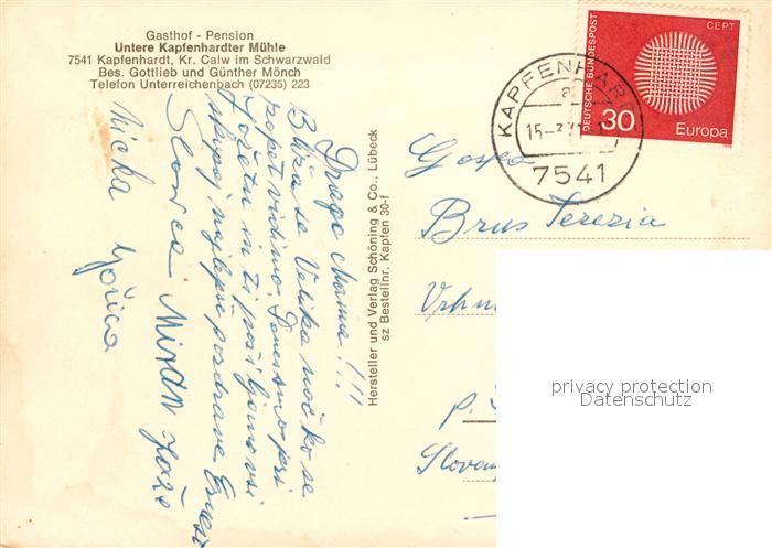73079347 alte Postkarte Kapfenhardt Gasthof Pension Untere Kapfenhardter Muehle postalisch gelaufen Erhaltung siehe scans [KathaD81] KatCode: 11110008235073