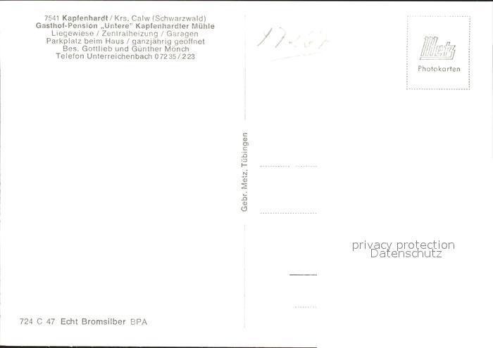 41768625 Kapfenhardt Gasthof Pension Untere Kapfenhardter Muehle Wegweiser Schwarzwald Bromsilber postalisch nicht gelaufen Erhaltung siehe scans KatCode: 11110008235073