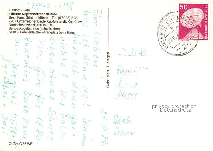73112028 alte Postkarte Kapfenhardt Gasthof Untere Kapfenhardter Muehle postalisch gelaufen Erhaltung siehe scans [NatalD47] KatCode: 11110008235073
