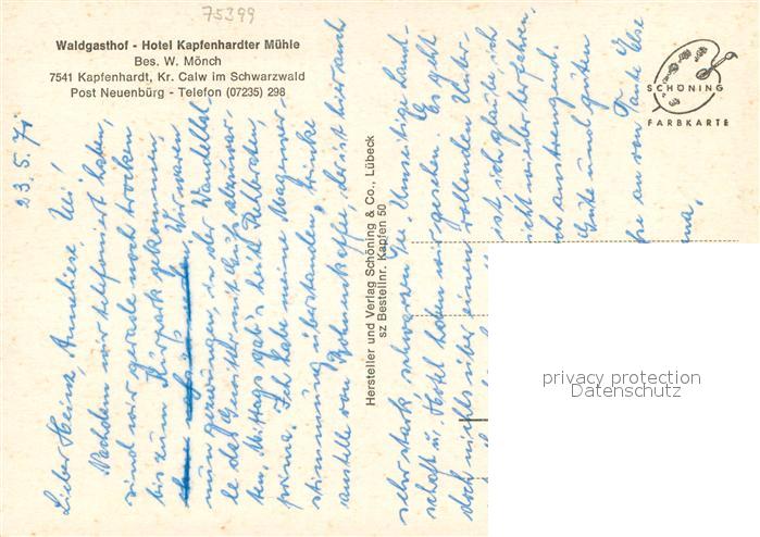 73653153 alte Postkarte Kapfenhardt Kapfenhardter Muehle Gastraeume Panorama postalisch gelaufen Erhaltung siehe scans [WerneD78] KatCode: 11110008235073