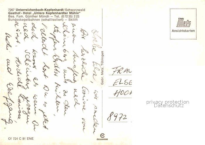 72716633 Kapfenhardt Unterreichenbach Gasthof Hotel Untere Kapfenhardter Muehle postalisch nicht gelaufen Erhaltung siehe scans [LiesaD40] KatCode: 11110008235073