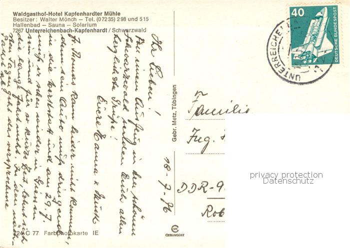 73771190 alte Postkarte Kapfenhardt Waldgasthof Hotel Kampfenhardter Muehle postalisch gelaufen Erhaltung siehe scans [WerneD78] KatCode: 11110008235073