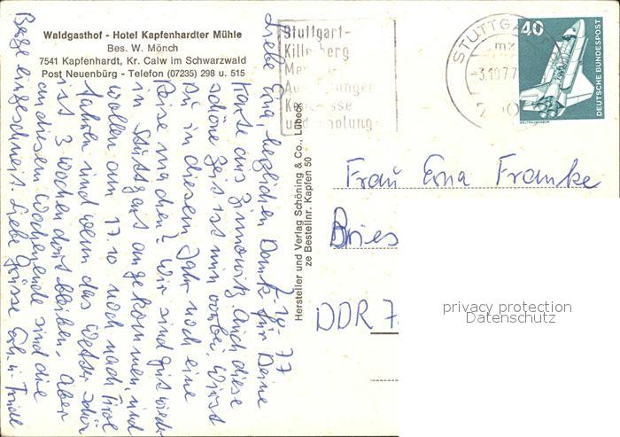 alte Postkarte Kapfenhardt Waldgasthof Kapfenharder Muehle postalisch gelaufen Erhaltung siehe scans