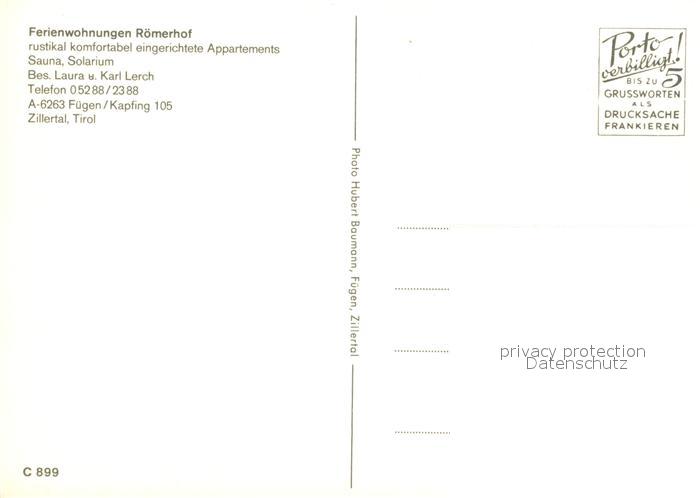 73198261 Kapfing Fuegen Ferienwohnungen Roemerhof postalisch nicht gelaufen Erhaltung siehe scans [KathaD81] KatCode: 11390335070909