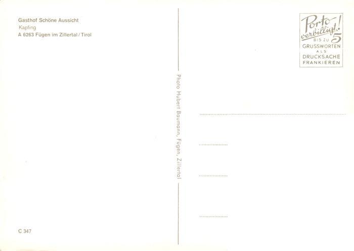 73869647 Kapfing Fuegen Gasthof Schoene Aussicht postalisch nicht gelaufen Erhaltung siehe scans [FriedD77] KatCode: 11390335070909
