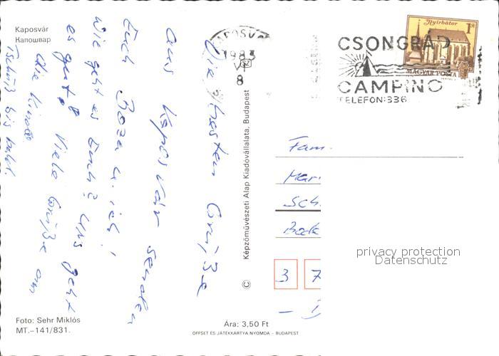 old postcard Kaposvar Kirche Ansichten Denkmal postalisch gelaufen Erhaltung siehe scans