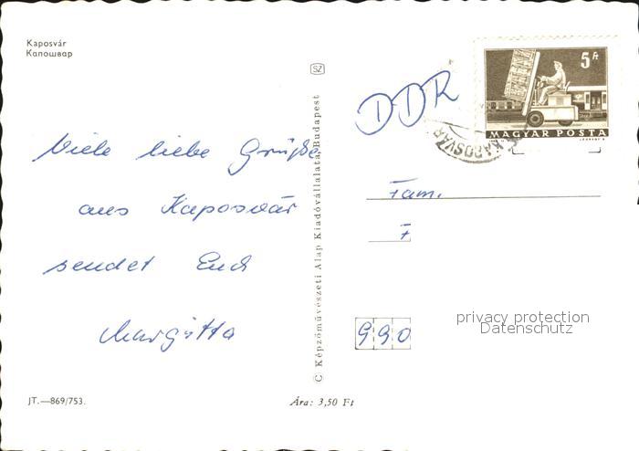 old postcard Kaposvar Teilansichten Gebaeude Hotel Denkmal postalisch gelaufen Erhaltung siehe scans