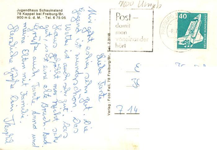 73932763 alte Postkarte Kappel Freiburg Breisgau Jugendhaus Schauinsland postalisch gelaufen Erhaltung siehe scans [WerneD78] KatCode: 11110008311000