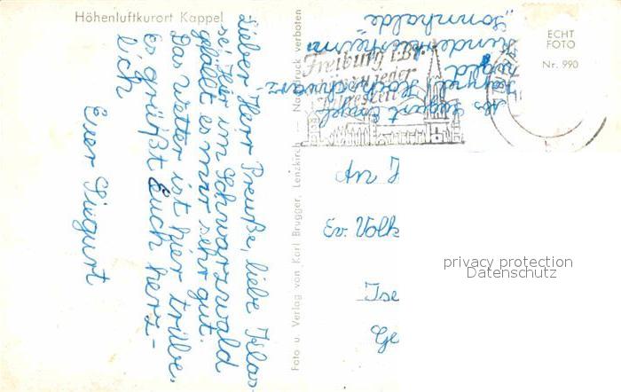 72794162 alte Postkarte Kappel Freiburg Breisgau postalisch gelaufen Erhaltung siehe scans [LiesaD40] KatCode: 11110008311000