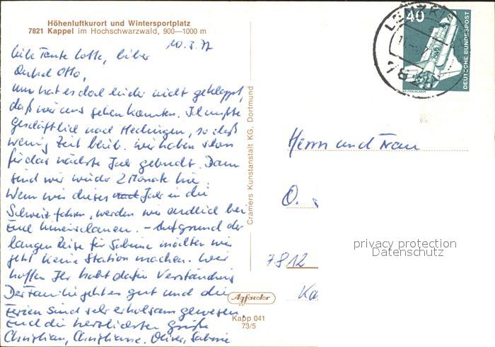 71830948 alte Postkarte Kappel Lenzkirch postalisch gelaufen Erhaltung siehe scans KatCode: 11110008315068