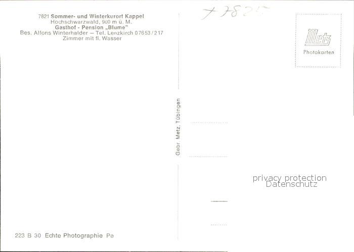 41784601 Kappel Lenzkirch Gasthof Pension Blume postalisch nicht gelaufen Erhaltung siehe scans KatCode: 11110008315068