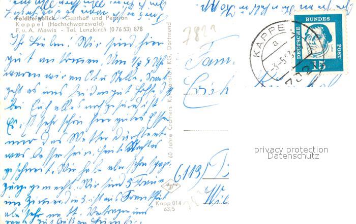 73596924 alte Postkarte Kappel Lenzkirch Gasthof Pension Feldbergblick postalisch gelaufen Erhaltung siehe scans [KathaD81] KatCode: 11110008315068