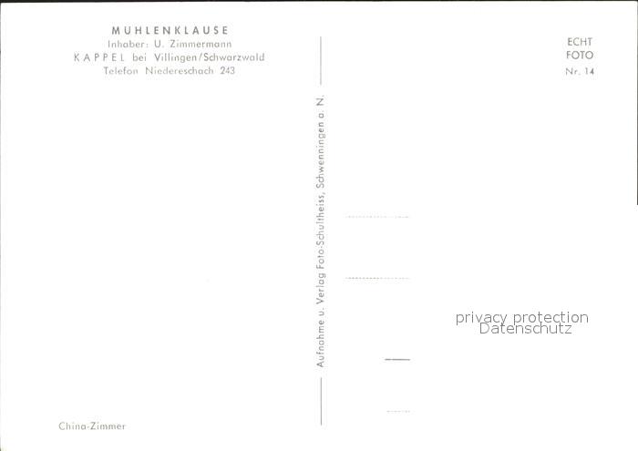 71935060 Kappel Lenzkirch Muehlenklause postalisch nicht gelaufen Erhaltung siehe scans KatCode: 11110008315068