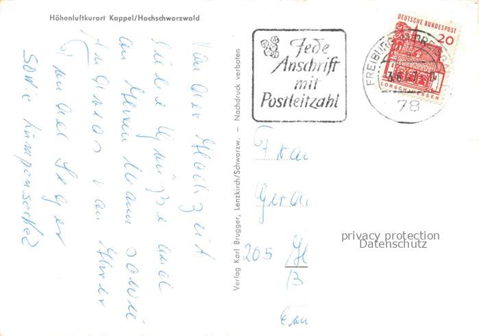 34145677 alte Postkarte Kappel Lenzkirch Schwarzwald BW Ortsansicht postalisch gelaufen Erhaltung siehe scans [WerneD78] KatCode: 11110008315068