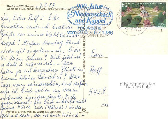 73634561 alte Postkarte Kappel Niedereschach Fliegeraufnahme postalisch gelaufen Erhaltung siehe scans [WerneD78] KatCode: 11110008326041