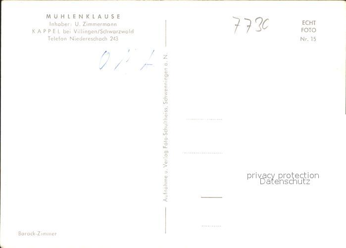 41576537 Kappel Niedereschach Mühlenklause Barockzimmer Historisches Cafe Weinrestaurant KatCode 11110008326041