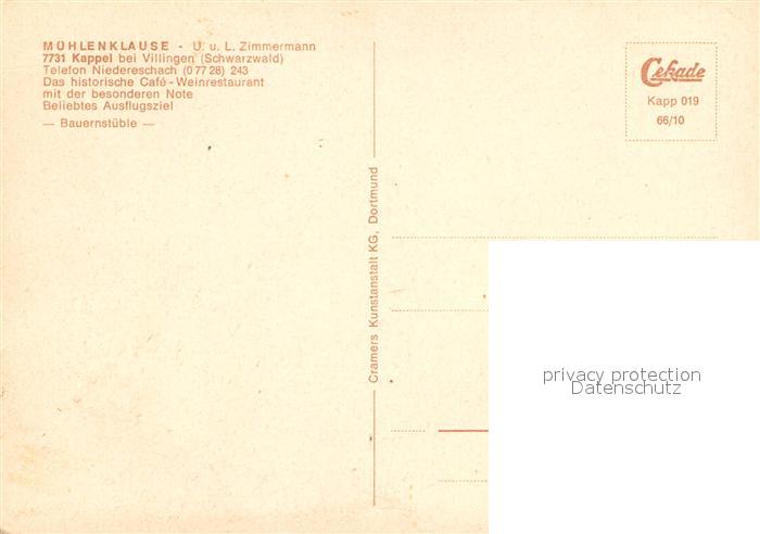 73642506 Kappel Niedereschach Muehlenklause Bauernstueble postalisch nicht gelaufen Erhaltung siehe scans [WerneD78] KatCode: 11110008326041