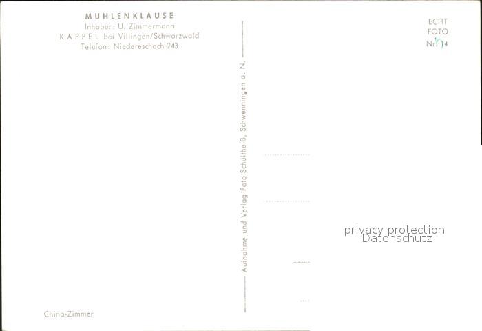 71838150 Kappel Niedereschach Muehlenklause Gaststube postalisch nicht gelaufen Erhaltung siehe scans KatCode: 11110008326041