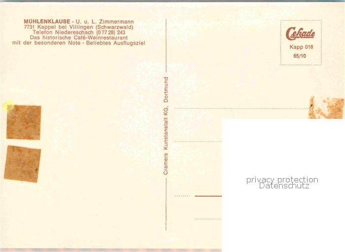 72715680 Kappel Niedereschach Muehlenklause Historisches Cafe Weinrestaurant postalisch nicht gelaufen Erhaltung siehe scans [FriedD77] KatCode: 11110008326041