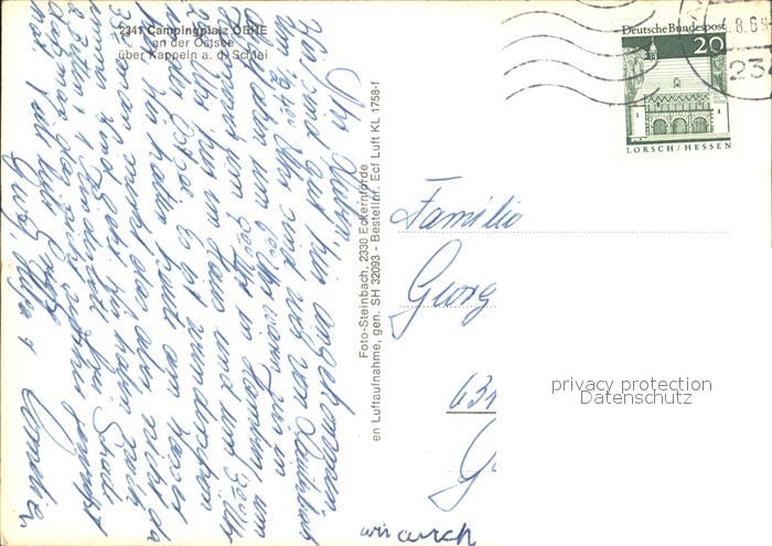 72016675 alte Postkarte Kappeln Schlei Campingplatz Oehe Fliegeraufnahme postalisch gelaufen Erhaltung siehe scans KatCode: 11110001059045