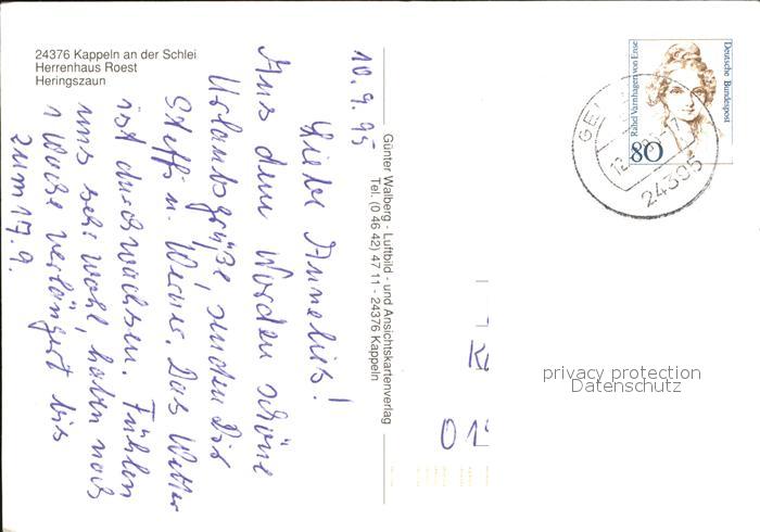 alte Postkarte Kappeln Schlei Herrenhaus Roest Heringszaun postalisch gelaufen Erhaltung siehe scans