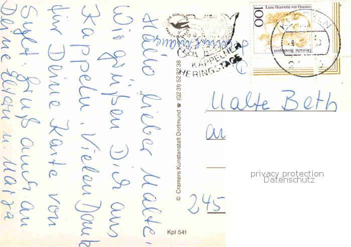 72881252 alte Postkarte Kappeln Schlei Windmuehle Partie an der Schlei Kirche Geschichte postalisch gelaufen Erhaltung siehe scans [FriedD77] KatCode: 11110001059045