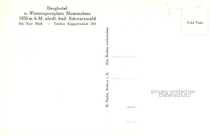 73564167 Kappelrodeck Berghotel Mummelsee postalisch nicht gelaufen Erhaltung siehe scans [KathaD81] KatCode: 11110008317056