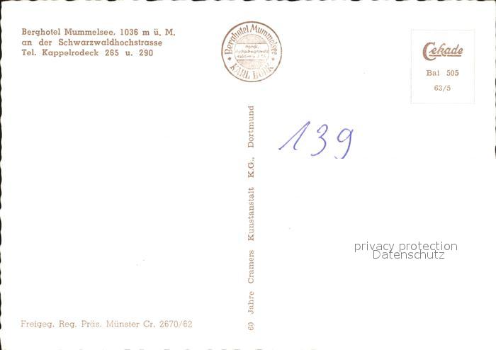 Kappelrodeck Berghotel Mummelsee postalisch nicht gelaufen Erhaltung siehe scans