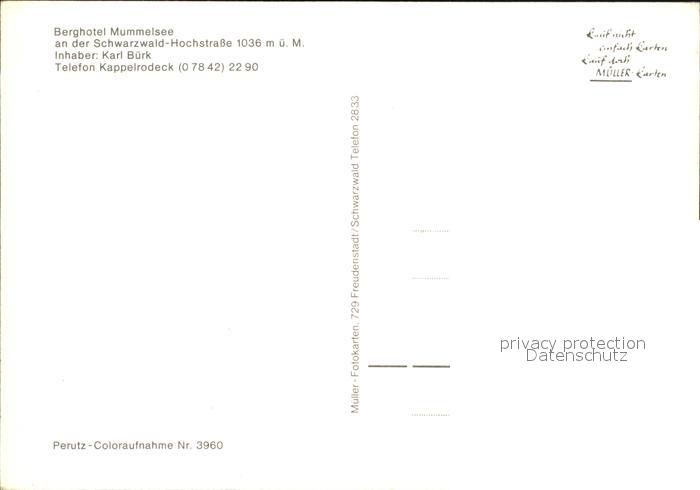 72421171 Kappelrodeck Berghotel Mummelsee postalisch nicht gelaufen Erhaltung siehe scans KatCode: 11110008317056