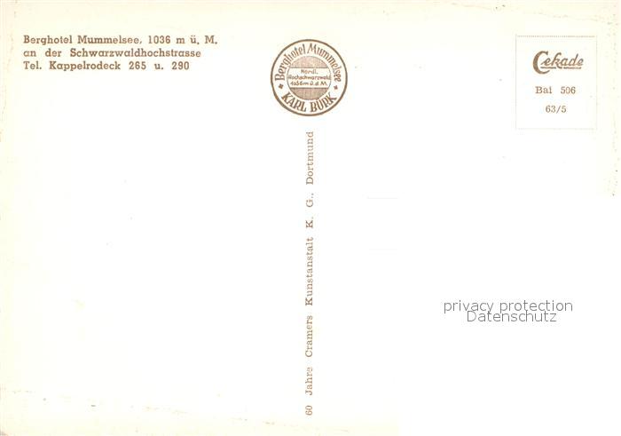 73686672 Kappelrodeck Berghotel Mummelsee Schwarzwald postalisch nicht gelaufen Erhaltung siehe scans [FriedD77] KatCode: 11110008317056