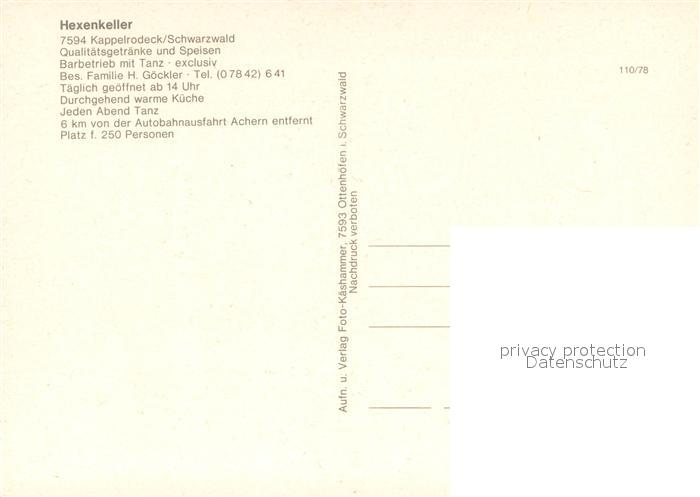 73641977 Kappelrodeck Gasthaus Hexenkeller Gastraeume Restaurant postalisch nicht gelaufen Erhaltung siehe scans [WerneD78] KatCode: 11110008317056